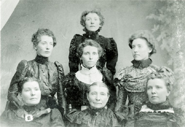 | Polly's mother and sisters Polly is lower left Mary Ann Emms Hobbs bottom center Courtesy of Milo Hadlock |
