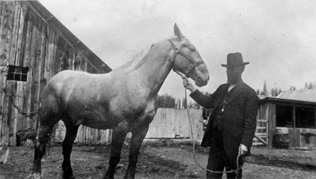 | In front of the Franklin home (the arrow points to Yellowstone) Reprint courtesy of Mary Etta Parkinson |